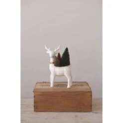 Creative Co-Op White Reindeer Indoor Christmas Decor 7.5 In.