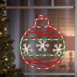 IG Design Green/Red Christmas Tree Silhouette Window Decoration 23 In.