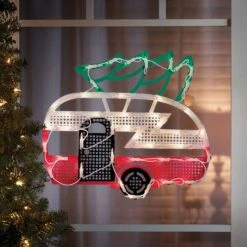 IG Design Multicolored Lighted Camper Silhouette Window Decoration 17 In.