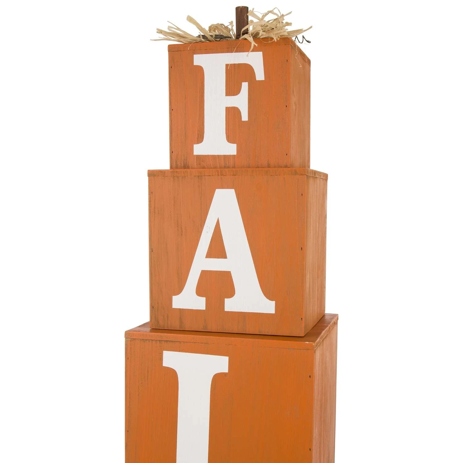 Give your home the gourd-geous fall accent it needs during the great harvest with FALL Stacked Pumpkins. Featuring raised letters with bright orange background. This elegant wood pumpkin will transform your old summer home into the sweetest autumn display. Arrange it with other pieces or add fall scatter around it for a complete look.No assembly requiredPrimarily made out of real woodPumpkins can be nested for easier storage