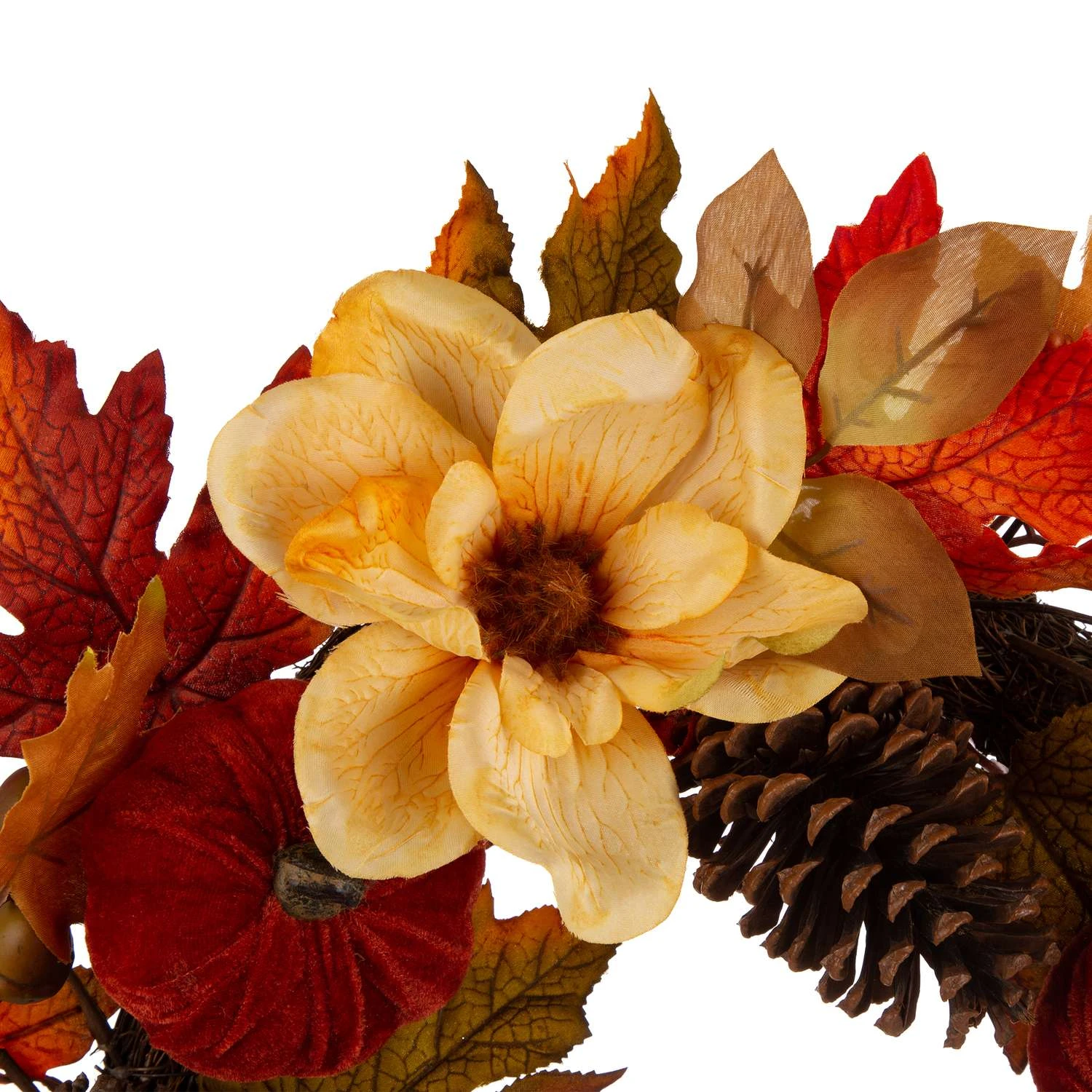 Glitzhome 5.25 In. Blooming Magnolia Wreath Fall Decor