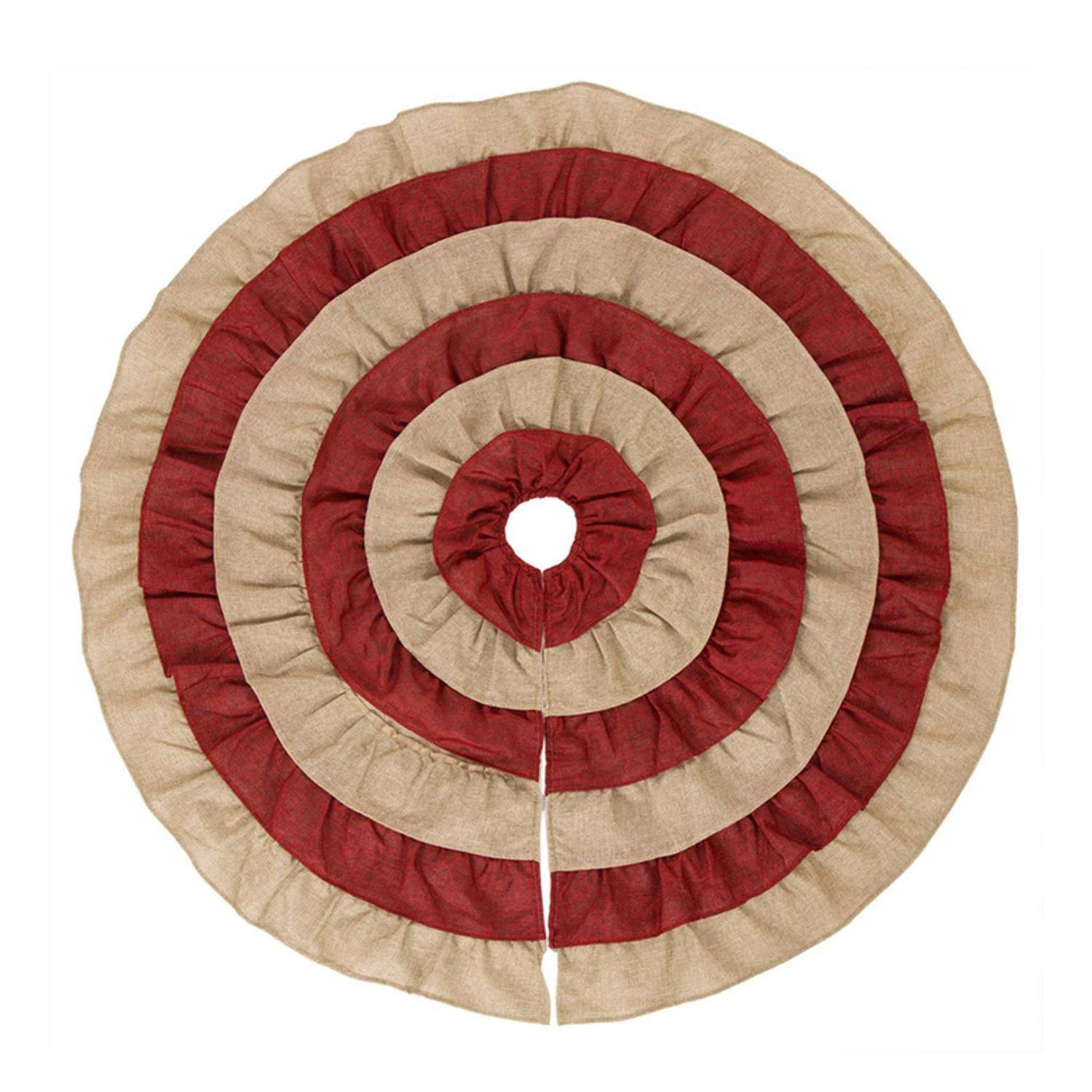 Glitzhome Khaki/Red Faux Burlap Christmas Tree Skirt 0.36 In.