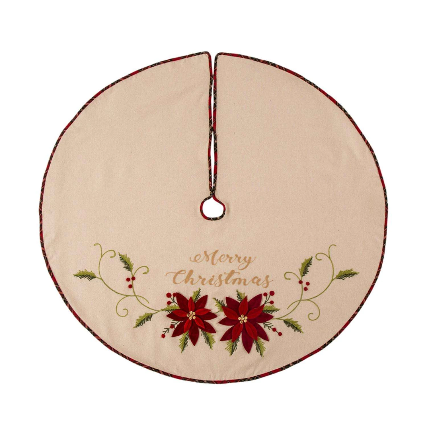 Glitzhome Multicolored Christmas Poinsettia Tree Skirt 0.39 In.