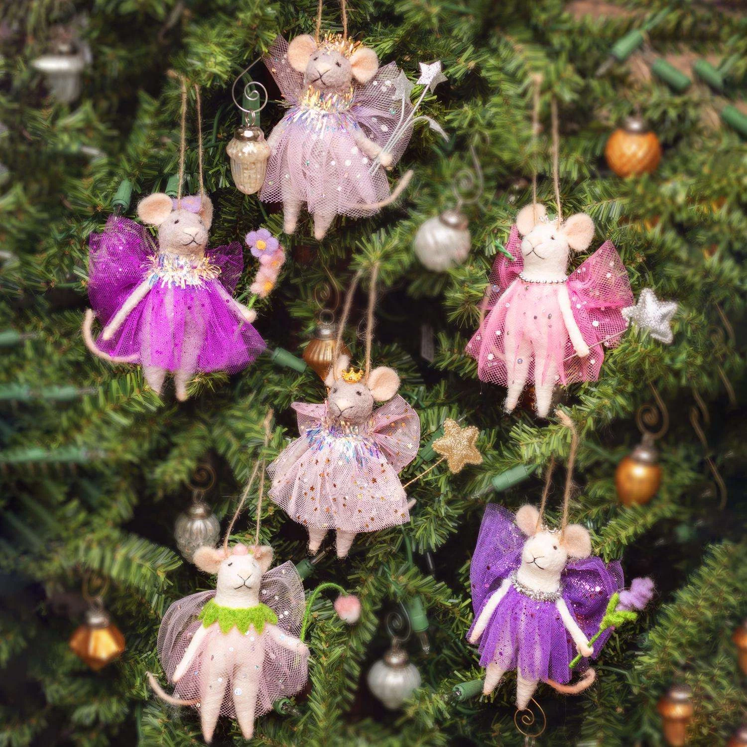 Felted ornaments of woodland, domestic and sea animals create the perfect element of charm in your holiday decorating. Each sweet character has a unique detail to add personality and a holiday touch. Mice adorned with wreaths, dogs wearing scarves and birdies with santa hats are all longing to be hung around your home’s tree, wreath or garland. Get whimsical this holiday season with soft to touch, non-breakable and full of character felt ornaments.Create a soft and whimsical holiday displayEach ornament has a unique accessorySpot clean