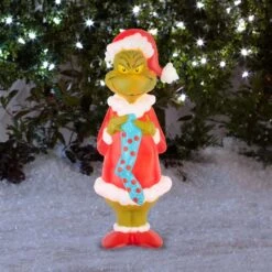 Dr. Seuss Incandescent White Grinch With Stocking 24 In. Blow Mold