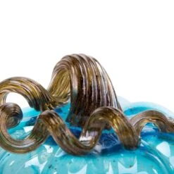 Glitzhome 4.21 In. Multi Striped Glass Pumpkin Tabletop Decor