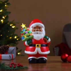 Mr. Christmas LED Ceramic African American Santa Claus With Tree Table Decor 9 In.