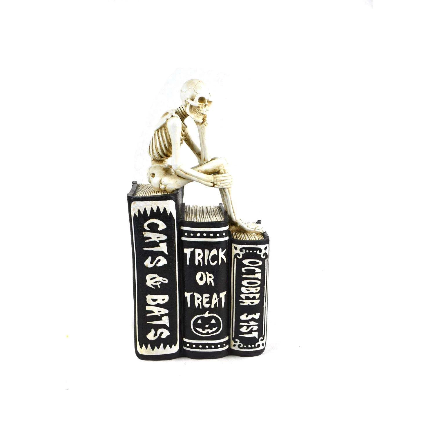 Touch Of Nature 6 In. Cat Skeleton With Books Halloween Decor