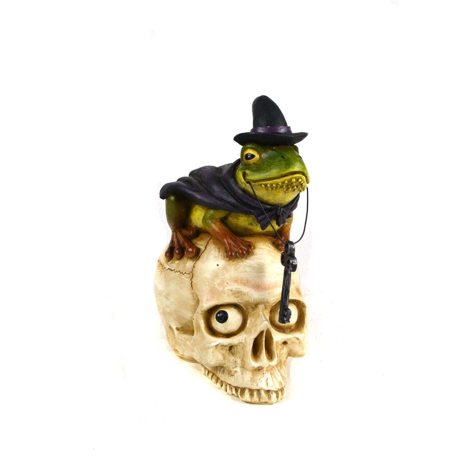 Touch Of Nature 9 In. Frog Sitting On Skull Halloween Decor